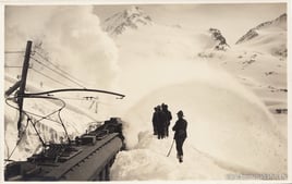 "Strenge Tage am Berninapass. Schneeräumung durch Militär und Schleudermaschine" So ist diese Postkarte auf der Rückseite beschriftet.