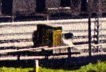 Die Vergrösserung zeigts: In der besagten Dreiergruppe ist ein grüner Post- oder Gepäckpostwagen abgestellt, der wohl zur Rhätischen Bahn gehört. Die Gepäckpostwagen der BB zu dieser Zeit waren gelb und viel gedrungener.