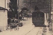 Sehr interessant! Diese Karte ist das "Original" der obigen, colorierten Aufnahme: Alles ist gleich, ausser der Zug. Das Fuhrwerk scheint zwar für meinen Geschmack immer noch zu gross, aber viel filigraner als in der Farbaufnahme.