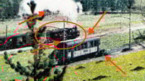 - Die RhB-Dampflok scheint zu lange, ein Teil links vom BB-Masten, der andere rechts, das passt nicht. Ebenso sind die Farben der beiden Teile unterschiedlich